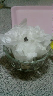 途中、紙ナフキンで花束作って遊んでた